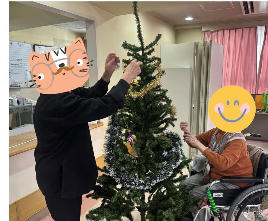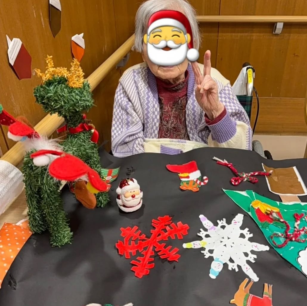 クリスマスツリー✨🎄✨や装飾を職員と利用者様で作りました🤩写真撮影はサンタの格好に照れてしまう方💜喜んで撮影される方とそれぞれでしたが🎅皆様とっても笑顔でした😊